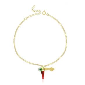Tornozeleira Pingente De Pimenta Olho Grego E Figa Banhado