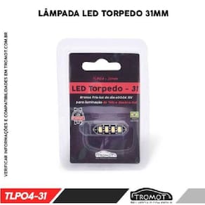 Led Torpedo TLP04 - Led torpedo branco frio luz do dia 6000K 12V.Desenvolvido com tecnologia de ponta e qualidade diferenciada, o TLP04 é a solução dedicada as exigências dos instaladores e consumidores.Aplicações: substitui a lâmpada halógena Torpedo Luz de placa e luzes internas TLP04-31 31mmfunção Thrue-Off lâmpadas realmente apagadas quando não estão em uso .Possui alta resistência a vibrações geradas pelo movimento do veículo.Produto de fácil instalação.Não compromete a garantia do veículo. Ean: 7899886701063
