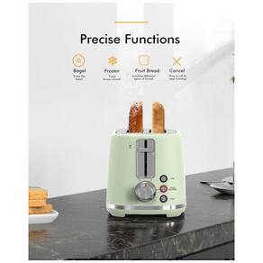 Torradeira 2 fatias 1000W com 6 níveis de tostagem, desligamento automático e bandeja de migalhas. Design compacto e eficiente.Permite ejeção manual