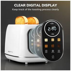 Torradeira Keenstone branca com tela sensível ao toque, 6 níveis de tostagem, funções bagel, descongelar e reaquecer, slot adaptável e design retrô em aço inoxidável.Permite ejeção manual