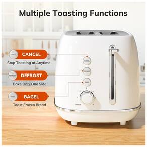 Torradeira retro de aço inoxidável, 2 fatias, com funções de bagel, descongelamento e cancelamento, 6 configurações de sombreamento, slots largos e alavanca pop-up.Permite ejeção manual