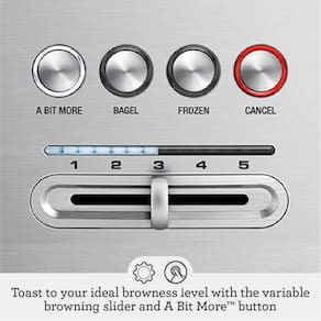 - A Breville Bit More é uma torradeira compacta de 2 fatias com um indicador LED que permite monitorar seu progresso; use recursos inovadores como "A Bit More" e "Lift & Look" para verificar sua torrada ou estender o ciclo de torragem