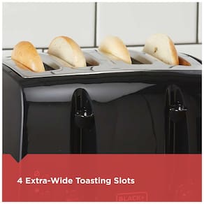 Torradeira BLACK+DECKER TR1410BD com 4 slots extralargos, 7 níveis de tonalidade, funções bagel, cancelar e descongelar, elevação extra e bandejas de migalhas removíveis.Permite ejeção manual