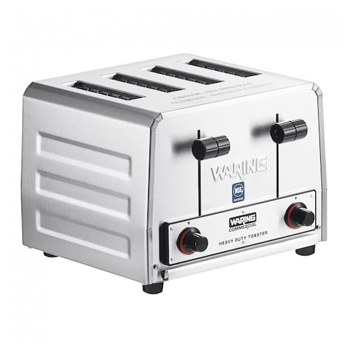 Torradeira comercial robusta em aço inoxidável, ideal para cafeterias e restaurantes. Garante torradas uniformemente douradas de pães, bagels e waffles congelados. Possui controles de tostagem ajustáveis, slots extralargos que acomodam até 300 fatias por hora, e bandeja de migalhas removível para fácil limpeza. Potente e eficiente para uso contínuo em ambientes comerciais.Permite ejeção manual