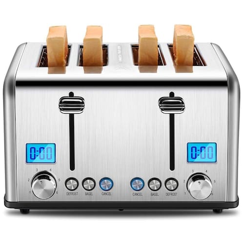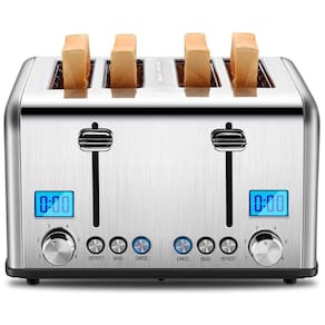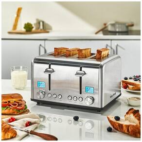 A torradeira de 4 fatias Roter Mond Countdown Stainless Steel é equipada com um display de LED e contador regressivo, indicando o tempo restante até que seu pão esteja pronto. Com slots extra largos de 3,8 cm, a torradeira em prata acomoda diversos tipos de pão, como bagels, pães artesanais grossos, muffins ingleses, waffles e torradas. Toasts uniformemente e rapidamente, possui corpo em aço inoxidável durável de alta qualidade. Com 6 níveis de tostagem e 3 funções, atendendo a todas as preferências. Fácil de usar e limpar, com bandeja de migalhas removível.