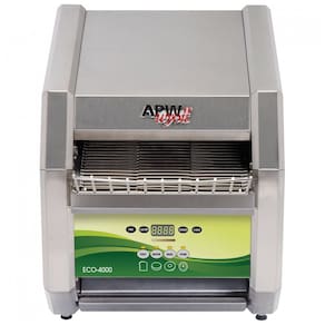 Torradeira de esteira com alta capacidade, prepara até 350 fatias por hora. Design com abertura e controles eletrônicos. Economia energética de até 365 por ano em comparação com torradeiras convencionais. Ideal para estabelecimentos comerciais.Permite ejeção manual