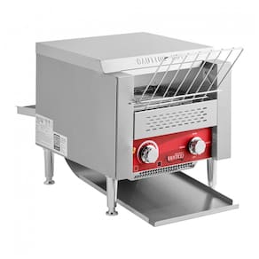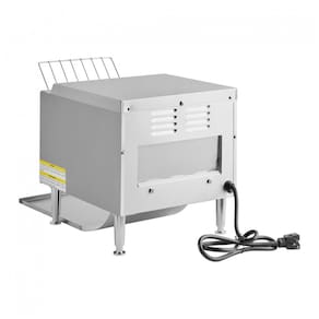 Esta torradeira de esteira é perfeita para qualquer cozinha comercial, sendo rápida, eficiente e fácil de usar. Com capacidade para torrar até 300 fatias de pão por hora, é possível acomodar desde fatias tradicionais de pão branco até metades de bagels robustos. Possui controle de velocidade ajustável para níveis de torra personalizados e pode ser colocado em modo de espera para economizar energia. Seu design único ajuda a produzir torradas perfeitas sem ressecar o produto. Esta torradeira de esteira pode torrar até 300 fatias de pão ou metades de bagel por hora em sua esteira de 10 polegadas, permitindo atender às horas mais movimentadas do dia. Além disso, graças ao modo de espera econômico, é possível conservar energia quando a torradeira não está em uso. Ela requer uma conexão elétrica de 110V para operação. O modo de espera mantém os elementos em potência reduzida para conservar energia entre os períodos de refeição, mas reduz o tempo de pré-aquecimento ao entrar em períodos de alto movimento. Para versatilidade, esta torradeira pode dispensar o produto pela frente ou pela parte traseira nas calhas incluídas. Além disso, possui 3 aberturas para acomodar grandes quantidades dos seus alimentos mais populares, desde pães fatiados tradicionais até bagels e torradas. Dispensar o produto pela parte traseira permite versatilidade de passagem da cozinha para o salão, enquanto dispensar o produto pela frente reduz a pegada de balcão da unidade e até permite que os usuários preparem o próprio produto para reduzir o custo da mão de obra. Diferentes tipos de pães torram de maneira diferente, desde branco e centeio até integral granuloso. Para ajustar a torradeira para a configuração perfeita, use o seletor fácil de usar na frente para diminuir ou aumentar a velocidade da esteira. Quanto mais rápido se move, menos tostado o pão ficará. Isso também é ótimo para garantir que a torrada de um cliente seja tostada conforme a preferência de crocância deles! A cozinha comercial é um ambiente rigoroso, então esta torradeira é construída de acordo. É um ótimo aliado para cafeterias, buffets e cafeterias, especialmente durante o rush matinal! Sua parte externa de aço inoxidável oferece durabilidade de longa duração, enquanto uma bandeja de migalhas removível torna a limpeza fácil.