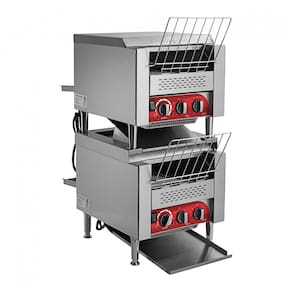 O design empilhado de alta eficiência desta torradeira tosta até 800 fatias de pão por torradeira, por hora, em uma esteira com 3 aberturas para uma variedade de pães, bagels e muffins. O guia de produtos na frente ajuda a carregar os alimentos. Velocidade do transportador totalmente ajustável e controle de calor independente com 8 configurações para obter a torrada perfeita. Construção robusta em aço inoxidável com pernas e botões de controle em aço inoxidável. 208V, 3300W por torradeira. Este conjunto de torradeiras de esteira apresenta um par de torradeiras de esteira T3300B empilhadas verticalmente para minimizar o espaço no balcão e maximizar a produção. Como pode tostar até 1600 fatias de pão ou metades de bagel por hora, você pode ter certeza de que está pronto para atender à demanda. Cada esteira de transportador de 10 polegadas de largura cabe 2 fatias lado a lado, enquanto seu tamanho de abertura de 3 polegadas acomoda uma variedade de produtos. O design único do elemento ajuda a produzir uma torrada perfeita sem ressecar o produto. Toste facilmente pão, bagels, muffins em inglês ou pãezinhos conforme o pedido do cliente. Um guia frontal até mesmo ajuda a carregar o produto com segurança, garantindo que cada fatia seja puxada diretamente para a unidade para torradas eficientes e consistentes. E com 2 torradeiras, você aumenta ainda mais sua flexibilidade, usando ambas as unidades para produzir volumes altos do mesmo produto, ou usando cada uma para fazer um produto assado diferente! Cada torradeira possui 8 opções de velocidade do transportador, que são fáceis de ajustar com botões de controle robustos. Esse controle permite que o operador selecione por quanto tempo o pão será torrado, determinando a coloração e crocância final. Além disso, os controles independentes são integrados para os elementos superior e inferior. Cada controle inclui configurações de 1 a 6 e fornece ao operador controle adicional para resultados de torrada personalizados e fáceis. Os controles individuais superior e inferior permitem que uma variedade de produtos seja torrada, como pães, bagels e muffins. Feito de aço inoxidável, este conjunto de torradeiras apresenta calhas dianteiras e traseiras fáceis de conectar e desconectar conforme necessário. Ele fica em pernas ajustáveis ??de aço inoxidável, garantindo que o balcão fique acessível para fins de limpeza. Cada torradeira horizontal de esteira requer uma conexão elétrica de 208V para operação. Para versatilidade, esta torradeira pode dispensar o produto pela frente ou por trás nas calhas incluídas. Além disso, possui 3 slots para acomodar grandes quantidades de seus alimentos mais populares, desde pão fatiado tradicional até bagels e pão de forma. Dispensar o produto pela parte de trás permite versatilidade de passagem da cozinha para a área de atendimento, enquanto dispensar o produto na frente reduz a pegada no balcão da unidade, e até permite que os usuários tostem o produto por conta própria para reduzir custos trabalhistas.