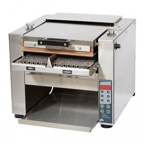 Desfrute de torradas perfeitamente crocantes e douradas com a Torradeira de Esteira Eletrônica Star HCTE13. Com alta velocidade de tostagem por contato, esta torradeira possui uma esteira de malha de arame que evita marcas, placa inclinada para facilitar o carregamento, aquecedores suplementares programáveis ??e superfície de tostagem de alumínio ultraeficiente. A área de carga segura com proteção contra queimaduras e a bandeja de migalhas removível tornam a limpeza uma tarefa rápida e fácil.