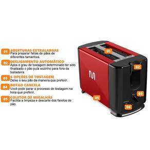 Coletor de Migalhas, ajuste de tostagem com 6 opções, capacidade de 2 pães e ejeção automáticaPermite ejeção manual