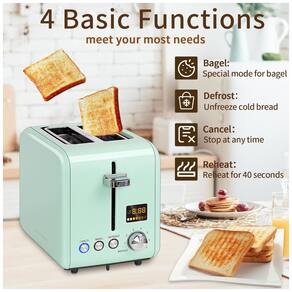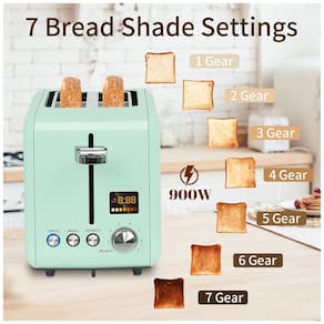 Torradeira elétrica 2 fatias, 900W, com 7 níveis de tostagem, display LCD colorido, funções Cancelar, Bagel, Descongelar e Reaquecer.Permite ejeção manual