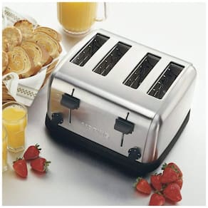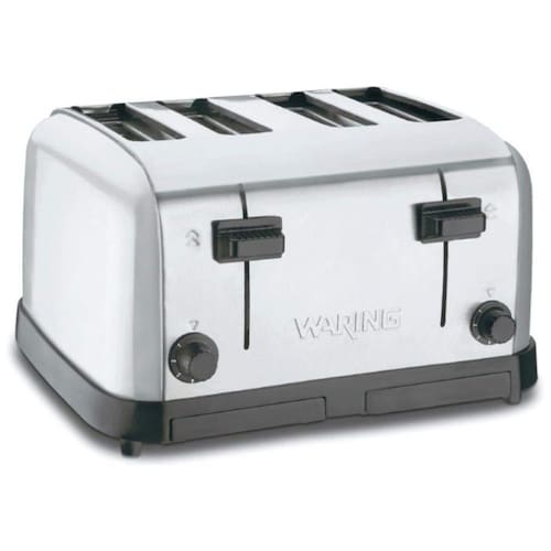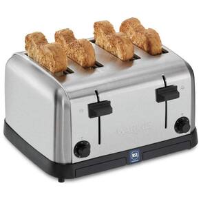Torradeira elétrica Waring WCT708 com 4 slots extra largos, controles eletrônicos de escurecimento e bandeja removível de migalhas. Ideal para pães e bagels.Permite ejeção manual