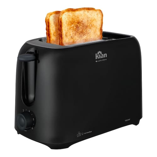Torradeira Elétrica Kian TO-100 com 750W de potência, 6 níveis de tostagem, função cancelar com botão iluminado, bandeja coletora de migalhas removível e design compacto na cor Petra.Permite ejeção manual