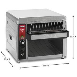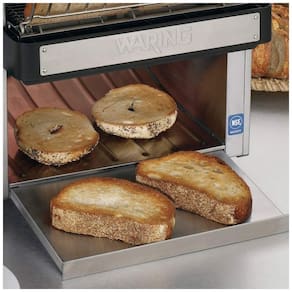 Sobre a torradeira A eficácia encontra a versatilidade com a torradeira de transporte resistente Waring CTS1000. Esta unidade leve e portátil é perfeita para cafés, lanchonetes, bares de café da manhã ou qualquer operação de serviço de alimentação que procure uma solução compacta e prática. Torre até 450 fatias por hora de pães e bagels de até de espessura. A saída super alta facilita o acompanhamento da corrida do café da manhã