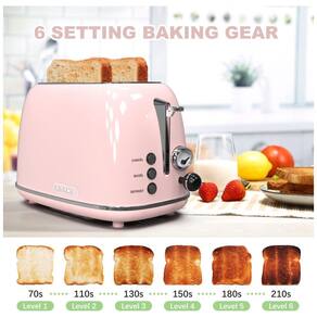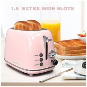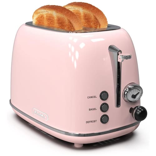 Torradeira elétrica retrô Kitchmix rosa, com 2 slots extra largos de 3,8cm, 6 níveis de tostagem, alavanca de levantamento alto e proteção de segurança inteligente.Permite ejeção manual