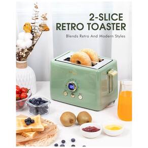 Torradeira elétrica retrô Amaste para 2 fatias, com 6 níveis de tostagem, funções de descongelamento, reaquecimento e bagel, temporizador digital LED, alavanca de alta elevação e bandeja de migalhas removível.Permite ejeção manual