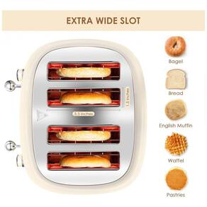 Torradeira elétrica retrô Roter Mond com capacidade para 4 fatias, slot extra largo de 3,8cm, 6 níveis de tostagem, funções bagel, descongelar e cancelar, e corpo em aço inoxidável.Permite ejeção manual