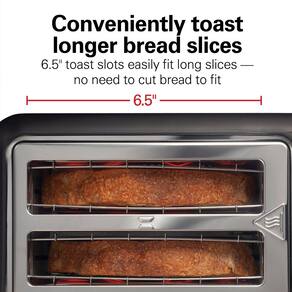 - TORRE FATIAS MAIS LONGAS DE FORMA CONVENIENTE: cansado das ranhuras de torradeira que não cabem nas fatias mais longas de hoje? As fendas mais longas de 6,5 polegadas desta torradeira de fenda longa resolvem esse problema, pois cabem facilmente em fatias longas — não é mais necessário cortar o pão para caber ou virá-lo para terminar de torrar.