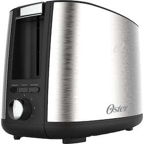 Torradeira Oster Simple Life com 7 níveis de tostagem, funções de descongelar e aquecer, bandeja coletora de migalhas e design em inox.Permite ejeção manual