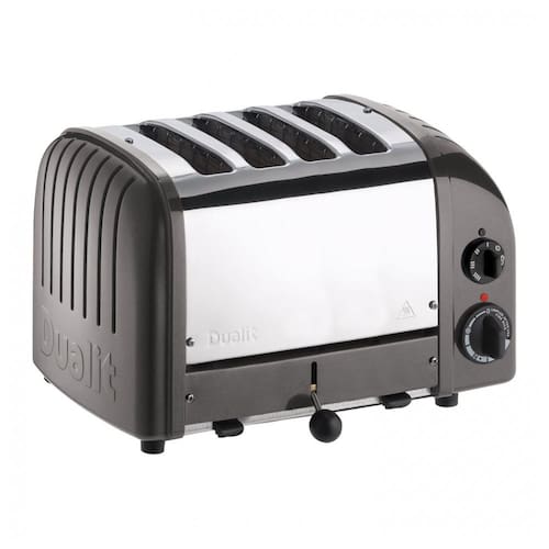 Torradeira com capacidade para 4 fatias, estrutura em aço inoxidável com painéis de alumínio fundido, botões seletor para operação de 2 ou 4 fatias, luz indicadora de funcionamento.Permite ejeção manual