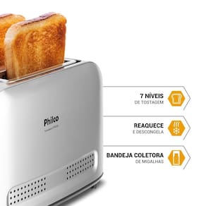 Descubra o prazer de começar o dia com pães perfeitamente tostados com a Torradeira Philco PTR03A 3 Funções.