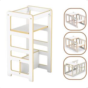 Desenvolvida com os princípios pedagógicos Montessori, a torre 4 em 1: Torre 2 níveis + Cadeirão + Mesinha, promove a independência e a aprendizagem ativa das crianças, adaptando-se às necessidades em cada estágio de crescimento.