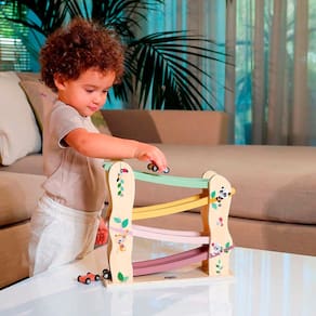 Características principais: • 4 carros de rápida rolagem; • Rampa divertida que ensina sobre gravidade e movimento; • Design Boho Chic com cores suaves; • Estimula a interação social durante as brincadeiras; • Ideal para o desenvolvimento motor e cognitivo.