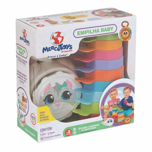 Torre de Empilhar Infantil - Empilha Baby - Gatinho - Mercotoys: conheça esse maravilhoso brinquedo que lhe surpreenderá. Brinquedo compacto com diferentes formas geométricas, cores e tamanho. Para brincar de abrir, empilhar, guardar e fechar. Ideal para pendurar na bolsa da mamãe. Contém 10 formas coloridas para empilhar. Incentiva: - Distinção de cores - Raciocínio lógico - Coordenação motora - Equilíbrio INFORMAÇÕES: • Produto: Empilha Baby Gatinho • Marca: Mercotoys • Tipo: Brinquedo para bebê empilhar • Tamanho do produto (C x A x L): 15 x 22 x 05 • Conteúdo: 10 Peças • Idade recomendada: para crianças a partir de 05 meses de idade ESPECIFICAÇÕES: • Referência: 459 • Embalagem (C x A x L): 23.5 x 24 x 10.5 cm • Embalagem (Peso): 0.395 Kg • Composição / Material: Plástico • Registro: 000673/2019 • Certificado: Órgãos Autorizados - OCP´S (Organismos de Certificação de Produtos) BENEFÍCIOS DE BRINCAR - Eleva a autoestima - Exercita a memória - Estimula o raciocínio - Exercita o imaginário - Desenvolve a criatividade - Desenvolve percepção visual - Desperta a atenção e curiosidade - Desenvolvimento neuropsicológico - Estimula habilidades motoras básicas - Incentiva a comunicação e linguagem - Desenvolve aspectos emocionais e afetivo - Estimula o reconhecimento de formas e cores AVISO: - As imagens são meramente ilustrativas - Os tamanhos e medidas são aproximados - As cores e estampas dos produtos podem ter variações - As informações são de responsabilidade do fabricante ou fornecedor
