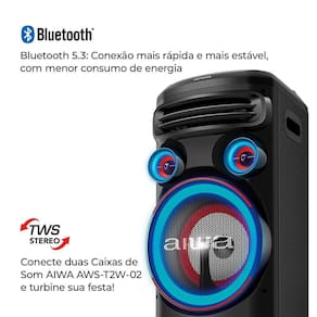 Com a função TWS (True Wireless Sound), você consegue duplicar o som da sua festa! Basta conectar duas Torres de Som Aiwa AWS T2W 01 para criar um efeito sonoro incrível. As rodas da torre facilitam o transporte do produto. Não perca essa oportunidade e garanta já a sua!