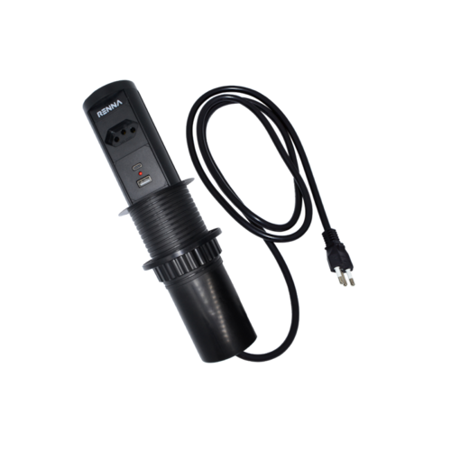 A torre de tomada Automática tem 1 tomada elétrica + 1 USB + 1 Tipo "C" em um único produto. A torre de tomada é compatível com smartphones IOS e Android. Pode ser fixado inclusive em mobiliário, como bancadas e tampos de mesa. Além de mármore e granito.