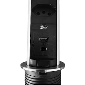 Torre Multiplug Tampa Inox Escovado com 2 Tomadas 1 USB e 1 USBC - KAZALINDA Precisou ligar mais de um aparelho eletrônico e dispositivos móveis ao mesmo tempo, mas faltou tomada no ambiente? Sem problemas, em poucos passos, a nossa torre de tomada com USB estará pronta para ser usada. A Torre Multiplug USB possui 2 entradas para tomadas e conta com entrada USB-A e USB-C, que possui carregamento rápido. Todas com sistema de proteção antichoque para crianças. Ideal para utilização em casas ou estabelecimentos comerciais. Está Torre possui um design moderno com acabamento na cor cinza e tampa em Inox Escovado. Discreta, ela fica escondida sob o móvel só aparecendo quando desejar utilizá-la. Possui furação padrão de Ø60mm, garantindo uma rápida e fácil instalação. Especificações técnicas: - Espaço para 2 tomadas, 1 USB-A e 1 USB-C - Furo padrão Ø60mm; - Corrente elétrica: até 20A; - Voltagem: até 230V (bivolt); - Potência máxima: até 3500W; - Padrão brasileiro de acordo com NBR 14136; - O cabo da Torre possui 1,8m. - Sistema de abertura Push to Open; - Material: Alumínio com partes plásticas e tampa em inox escovado; - Altura: 29cm - Marca: Kazalinda