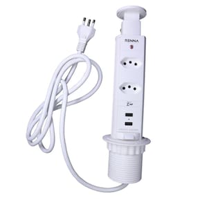 Torre Multiplug Torre de Tomada USB - RennaA Torre Multiplug é ideal para utilização em cozinhas e escritórios.Com um design discreto, a torre fica escondida sob o móvel só aparecendo quando desejar utilizá-la.A Torre Multiplug possui entrada para 2 tomadas, todas com sistema de proteção antichoque para crianças e 2 entradas USB.O Multiplug possui furação padrão de Ø60mm, garantindo sua rápida e fácil instalação.Acabamento: Cor BrancaEspecificações técnicas:- Furo padrão Ø60mm;- Corrente elétrica: até 16A;- Voltagem: até 250V (bivolt);- Potência máxima: até 3500W;- Espaço para 2 tomadas e 2 entradas USB;- Padrão brasileiro de acordo com NBR 14136;-O cabo da Torre possui 1,58m.