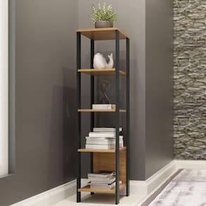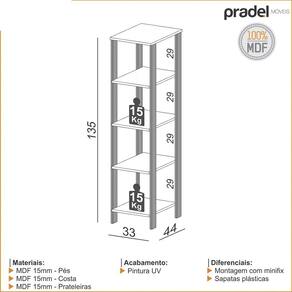 TORRE ESTANTE COM 5 PRATELEIRA INDUSTRIAL 33 X 135CM FREIJO PRETO FOSCO PRADELA Torre c/5 prateleiras tem seu design com inspiração no estilo industrial, que remete muito a decoração utilizada nos lofts das grandes metrópolesHarmonizando o metal e os tons de madeira, foram projetados móveis versáteis e com estilo, que podem compor ambientes flexíveis cheios de personalidade,perfeitos para você decorar sua casa ou seu trabalho, tendo um resultado que caminha do estilo rústico ao moderno.*Medidas do Produto MontadoAltura:1,35cmLargura: 33cmProfundidade: 44cmCor: Freijo/preto fosco*Informações basicas:Material: MDF 15mm pés e costa/ 15mm prateleiras Acabamento: Pintura UVPeso suportado: 15 kgDistancia de uma prateleira a outra 29mmDiferenciais: Montagem com minifix e sapatas plasticasUse um pano limpo e ligeiramente umedecido em águaLogo após, seque a superfície com um pano seco e macio.Conteúdo da embalagem: 01 TORRE COM 5 PRATELEIRA*Garantia: 03 meses contra defeitos de fabricação.*Imagens Meramente Ilustrativas.*Objetos de decoração das fotos não estão inclusos.*As cores podem variar conforme monitor/smartphone utilizado para a visualização do anúncio.*Não oferecemos serviço de montagem dos produtos, porém, acompanham esquema de montagem na embalagem; Recomendamos que o serviço seja feito por um profissional.