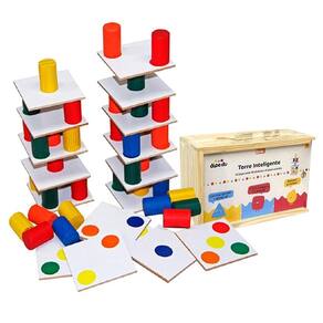 Assim a torre inteligente promove exercício cerebral nos campos intelectual e motor principalmente. Alguns dos principais pontos em que este jogo educativo, pode atuar no desenvolvimento da criança: agilidade, habilidade, concentração, inteligência espacial, coordenação motora. Torre inteligente é um jogo educativo clássico, muito utilizado, para pais, terapeutas e professores trabalharem o raciocínio lógico da criança. Divertido e dinâmico, ele é confeccionado em madeira, sendo composto por 63 peças e acondicionados em uma caixa de madeira tipo estojo, para que você possa levá-lo para onde quiser. Atenção: imagem meramente ilustrativa. Pode ocorrer mudanças no tom da cor para o produto real ou mudanças na embalagem sem aviso prévio por parte do fornecedor/fabricante. Homologação Inmetro: CE-BRI/IDEAL 00132/22-01