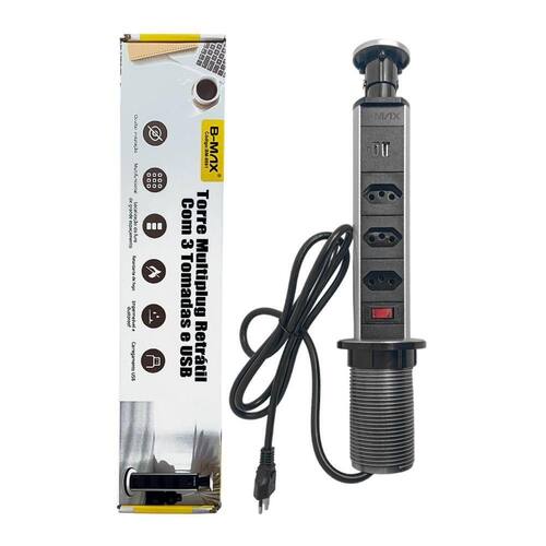 1x Torre Tomada de Embutir Retrátil [3 Tomadas]
