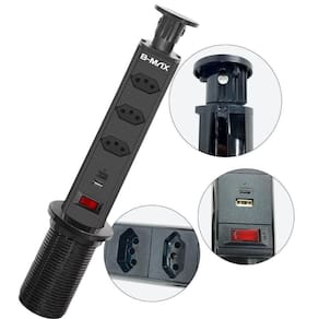 1x Torre Tomada de Embutir Retrátil 20A 3 Tomadas [Preto]