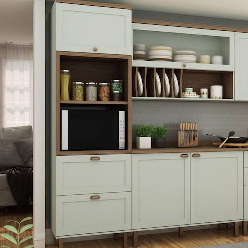 A Torre 2 Fornos possui design contemporâneo inspirado no estilo americano. Possui fita de borda em PVC, conferindo alta durabilidade e proteção contra umidade ao móvel. Com portas e frentes de gaveta em BP feitas em MDF e dobradiças com amortecimento, possibilitando fechamento “soft closing”. Suas corrediças são telescópicas, possibilitando abertura total da gaveta. A Torre possui espaço para dois fornos o que possibilitam a versatilidade do móvel tornando-o mais espaçoso, conferindo praticidade e usabilidade no dia a dia. Suporta Granito: Não Acabamento da Prateleira: Pintura UV Escala de Brilho da Prateleira: Fosco Acabamento da Gaveta: BP Marromamínico Escala de Brilho da Gaveta: Fosco Material do Puxador da Gaveta: ABS Acabamento da Porta: BP Marromamínico Escala de Brilho da Porta: Fosco Material do Puxador da Porta: ABS Acabamento: Pintura UV Acabamento dos Pés: Pintura Acompanha Tampo: Não Altura dos Pés: 17 Ambiente Principal: Cozinha Balcão Acompanha Pia: Não Complexidade da Montagem: Média: pode ser montado por mais de uma pessoa e/ou necessite de maior conhecimento para montagem Cor: Verde Mint/Ébano Fosco Cor do Pés: Champagne Cor do Produto: Verde Mint/Ébano Fosco Cor Flex: Não Cor Interna: Verde Mint Escala de Brilho: Fosco Gaveta com Chave: Não Informações Complementares: Torre 2 Fornos 70cm 100% MDF Genialflex Itens Inclusos: 1 Balcão, Kit Ferragens e Manual de Montagem Linha ou Coleção: Iluminata Manual de Especificação Técnica: Manual de Montagem e Instalação: https://cdn2.madeiramadeira.com.br/atributo/genialflex-moveis/1090001-1514.pdf Material da Gaveta: MDF Material da Grade: Material da Porta: MDF Material da Prateleira: MDF Material do Tampo: Material dos Pés: ABS Medida do Recorte para Cooktop: Medida do Tampo (L x C x E): Montagem Flex: Não Necessita Montagem: Sim Origem do Produto: Nacional Pés Reguláveis: Sim Peso: 62 Peso Máximo por Gaveta: 7 Peso Máximo por Prateleira: 15 Possui Grade: Possui Pés: 04 Possui Portas: 02 Possui recorte para Cooktop: Não Recomendações de Uso, Manutenção e Limpeza: Limpar com pano umedecido Rodízio com Trava: Sapatas Niveladoras: Não Sistema de Montagem: Parafusos e Cavilhas Suporta Até (kg): 55 Tipo de Corrediça da Gaveta: Telescópica Tipo de Dobradiça/Corrediça da Porta: Soft close Tipo de Madeira Maciça: Tipo de Madeira Maciça da Gaveta: Tipo de Madeira Maciça da Porta: Tipo de Madeira Maciça da Prateleira: Tipo de Madeira Maciça do Puxador da Gaveta: Tipo de Madeira Maciça do Puxador da Porta: Tipo de Madeira Maciça dos Pés: Tipo de Porta: Basculante Tipo de Puxador da Gaveta: Externo Tipo de Puxador da Porta: Externo