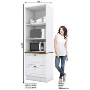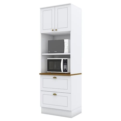 Torre Quente 2 Fornos Americana Branco Com Tampo Nature - Móveis Henn Branco/nature Torre Quente 2 Fornos Americana - Móveis Henn Os módulos da Cozinha Modulada Americana é uma linha clássica e atemporal, pensada para transformar esse ambiente no cantinho preferido do seu lar. Produzida 100% em MDF, na cor branco, uma pintura UV fosca, todas as portas e gavetas contam com usinagem em baixo relevo e os puxadores em zamac ouro velho garantem um charme extra a qualquer ambiente. ESPECIFICAÇÕES: - Estrutura 100% MDF - Acabamento UV - 2 Portas - Dobradiças de 35mm com amortecimento - 2 Gavetas - Corrediças telescópicas - Espaço para eletrodomésticos: 1- 42,4 x 68,4 x 48 cm e 2- 38,6 x 68,4 x 53,3 cm - Puxadores em zamac ouro velho - Usinagem em baixo relevo - Tampo BP/MDP - Opção de instalação sem pés, suspensa - Amplo espaço interno