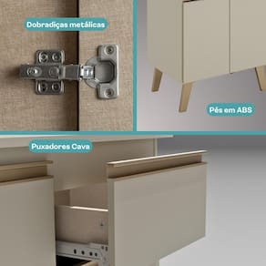 Elaborada com MDP de alta qualidade, puxadores e pés em ABS e dobradiças e corrediças metálicas, garante durabilidade, resistência e sofisticação em cada detalhe, sem abrir mão da praticidade para o uso diário!