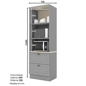 Modelo: C351Materiais: MDF de 15mm (fundo em MDF de 3mm), puxadores, dobradiças, corrediçasAmbiente: CozinhaEstilo: ModernoPeso suportado das gavetas: 3kgPeso suportado das prateleiras: 8kgAltura sem rodapé: 206 cmEspaços para eletros:1 nicho: A: 42,4 x L: 68,4 x P: 48 cm2 nicho: A: 38,6 x L: 68,4 x P: 53,3 cm