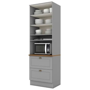 Torre Quente Para Forno 2 Portas e 2 Gavetas 72 cm, cozinha com inspiração no estilo provençal e nas clássicas cozinhas . Estrutura 100% MDF de 15mm (fundo em MDF de 3mm), possui rodapés com opção de instalação suspensa (ferragens para fixação na parede inclusas). Suas 2 portas contam com dobradiças metálicas de 35mm com amortecimento e 2 gavetas com corrediças telescópicas, que proporcionam um deslizar suave e silencioso. Possui 3 prateleiras, cada uma suportando até 8kg. Os fundos da parte dos eletros não devem ser instalados, garantindo maior ventilação. Conta com 1 nicho para mantimentos e acessórios. A pintura UV texturizada proporciona acabamento sofisticado e fácil de limpar. Com tampo de 71,5 x 53,3 cm e espaço para 1 eletrodoméstico. Produto entregue em 3 volumes.