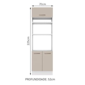 Possui dois espaços para forno ou micro-ondas de 47 cm x 67 cm com abertura para saída do calor. Os pés são em PVC com regulagem de altura e rodapé removível em MDP de fácil encaixe.