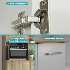 A Torre Quente da Compacta da Carraro é o item perfeito para quem está procurando funcionalidade e organização para ambientes compactos. O módulo de torre quente possui duas portas no balcão, duas portas aéreas e um nicho com espaço para micro-ondas, com medida interna de 57,4 cm de largura, 43,6 cm de altura e 44 cm de profundidade. Os pés plásticos facilitam na limpeza do ambiente, além de possuírem regulagem de altura.