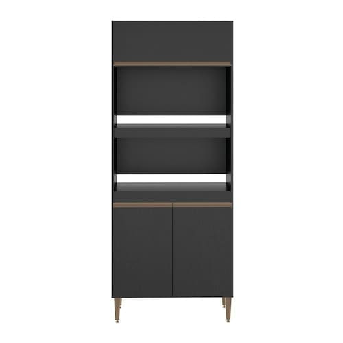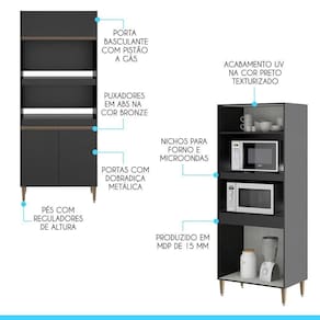 O Armário Nicho da Cozinha Sabrina foi desenvolvido para atender todas as suas necessidades do dia a dia com um design moderno, cheio de atitude, funcionalidade, beleza e versatilidade. A cozinha preta é uma tendência e foi arquitetada para facilitar a sua rotina diária mantendo seu ambiente organizado e aconchegante. Possui duas portas, nicho para forno, nicho para microondas e porta basculante. A elegância fica por conta dos puxadores em perfil e os pés na cor bronze dando um toque único de sofisticação. Produzido com materiais de excelente qualidade, garantindo a durabilidade e vida útil. O melhor em móveis no design atual aliando conforto, qualidade e ótimos preços, só na Menu Móveis!