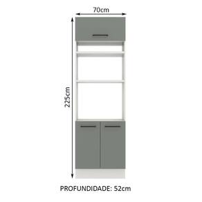 Possui dois espaços para forno ou micro-ondas de 47 cm x 67 cm com abertura para saída do calor. Os pés são em PVC com regulagem de altura e rodapé removível em MDP de fácil encaixe.