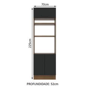 Possui dois espaços para forno ou micro-ondas de 47 cm x 67 cm com abertura para saída do calor. Os pés são em PVC com regulagem de altura e rodapé removível em MDP de fácil encaixe.