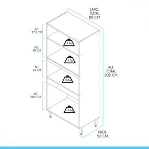 Dimensões do Balcão: Altura: 202 cm Largura: 80 cm Profundidade: 52 cm Peso: 43 kg