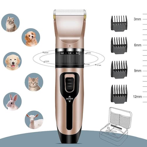 Tosa de Cachorro com Maquina Máquina Recarregável e Silenciosa Design sem fio: Equipada com uma bateria de iões de lítio recarregável de 1500 mAh de alta qualidade, não será perturbado pelo cabo de alimentação. Carrega em 3-5 horas, suporta 120 minutos de uso contínuo. Silêncio: O ruído de trabalho abaixo de 50 DB ajuda os animais de estimação a se sentirem confortáveis, sem preocupações com cortes de cabelo. Seguro e afiado: A lâmina de liga de titânio de corte preciso proporciona aos animais de estimação uma experiência de cuidados com a pele agradável. Não puxa o cabelo do animal de estimação nem machuca a pele. A lâmina removível é fácil de substituir e limpar.
