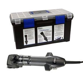 Máquina de Tosquiar Bovinos e Equinos 110V – Oster Clipmaster Perfeita também para Bovinos, a Máquina de Tosquiar Cavalos 127V da marca Oster, modelo Clipmaster é uma máquina poderosa, capaz de cortar qualquer tipo de pelo. Robusta, tem motor resfriado a ar e requer pouca lubrificação. Permanece fria e confortável durante todo o dia. Tem a carcaça resistente com textura antiderrapante para maior firmeza na pega. Seu motor é resfriado a ar, e requer pouca lubrificação. Características: Velocidade Única (3000 ciclos de corte por minuto); tensão 127V (110V); motor de alta potência (150 W); tensão das lâminas facilmente ajustável; tela de ventilação removível para fácil limpeza; certificada pelo INMETRO; Garantia de 1 ano contra defeitos de fabricação. Acompanha: Lâminas 83 e 84AU já instaladas Graxa para máquina de tosa; Tela de ventilação extra Manual em português Prática caixa de transporte com compartimento inferior para a máquina e compartimento superior para organizar acessórios.
