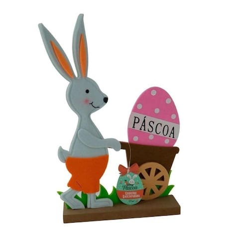 Totem Decor Coelho Carrinho De Mao Totem Decor Coelho Carrinho de Mao - Os enfeites coloridos simbolizam a alegria da ressurreição. Ovos, outros itens são utilizados para enfeitar a árvore, como é o caso de penas coloridas, flores, guloseimas e até mesmo coelhinhos de feltro, tudo para deixar a casa com um ambiente alegre e diido. material - feltro e madeira medidas aprox. 20x5x35cm